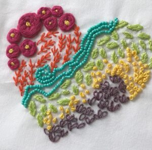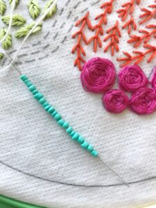 I had been working on an embroidery project and suddenly I realized that embellishing it with some beads might be a fun way to use the Swift Bead and add some dimension to the embroidery. It took me a little bit to get into the rhythm of how many beads I wanted at a time on my needle, sliding them onto the thread then attaching them to my embroidery pattern. But once I got the rhythm going it was a fast process. And wow do I love the extra texture that it added to the embroidery.