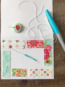 I cut little fabric scraps and sewed them directly to the card stock. And thanks to the Swift Bead I easily and quickly added little strips of beads. Add a quick message to the outside of the card and it is ready for your letter inside! There is no need to worry about perfection in a project like this!