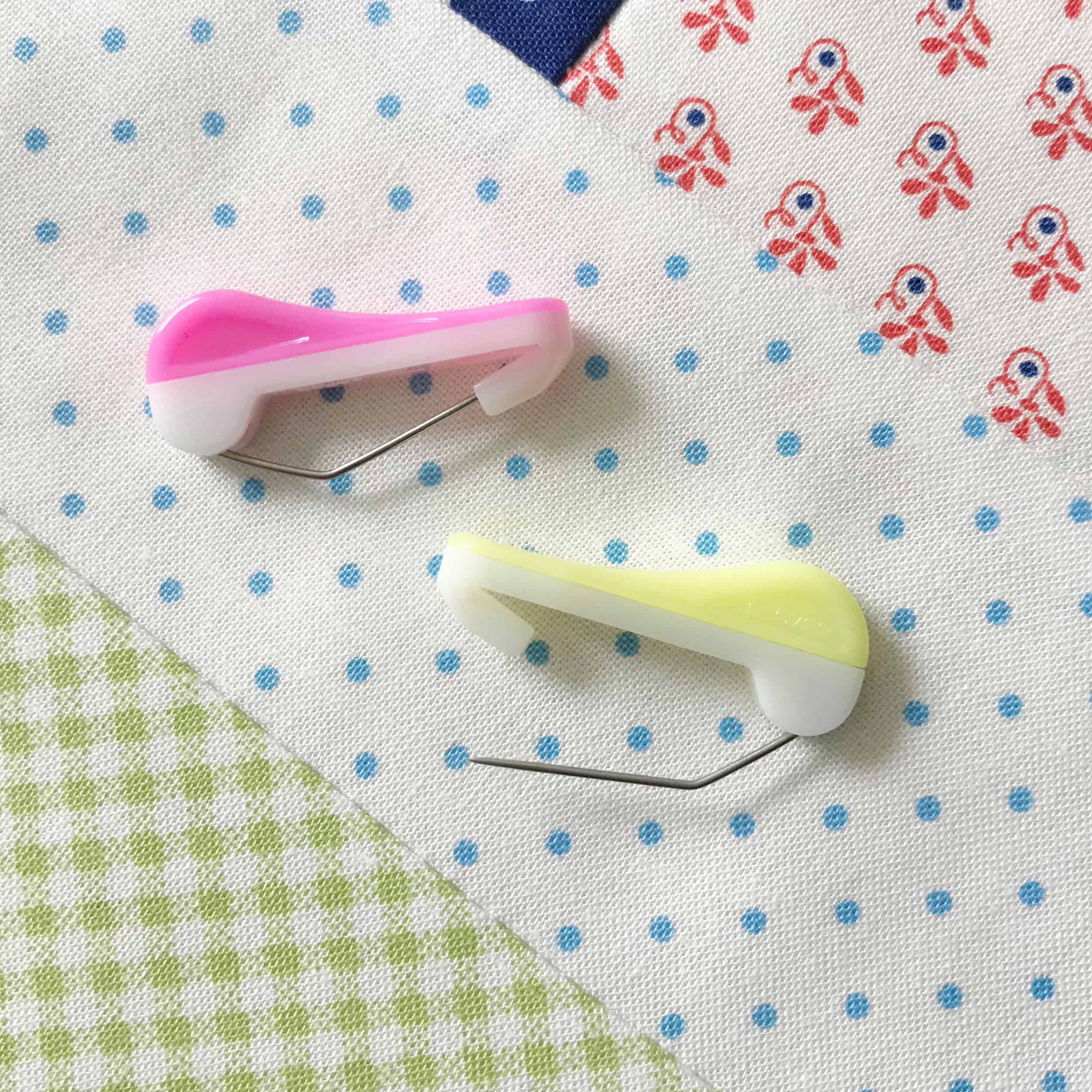 The Wonder Pin is a revolutionary pin concept leveraging the benefits of both straight pins and safety pins. The handle or “closure” on the top of the pin allows us to comfortably manipulate the pin into the desired position. The obtuse angle of the pin enables easy engagement of our fabric as it lays on a flat surface. The point is sharp and the shaft is smooth allowing easy insertion through heavy or multiple layers of fabric. Once the point emerges from the fabric simply push the enclosure down to lock in place. To unpin we just push down and over with the closure and pull the Wonder Pin free. The best part is it’s a one-handed operation. The Wonder Pin is easy to apply and easy to remove making our sewing process smooth and fast and accurate.