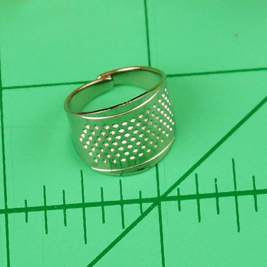 An adjustable metal ring thimble with dimples on the periphery. This is a very adaptable thimble used for any number of specialized techniques or requirements. One adjustable size.