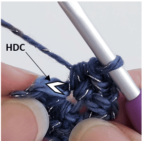 Row 2 (WS): Ch 2, sk 1st st, work 2 HDC in the ch-1 space (the ‘eye’ of the Star Stitch from prev row), HDC into the top st/spike of the Star Stitch from prev row. Turn.