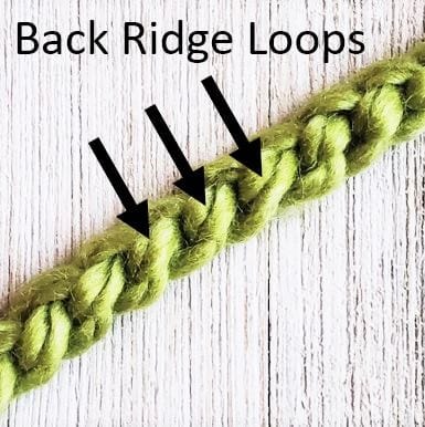 - The first round is crocheted into the back ridge loops of the foundation chain.