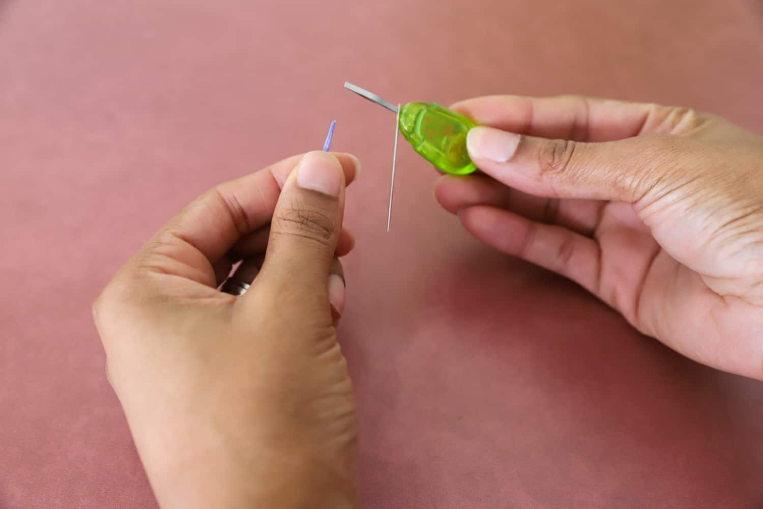 Step 2. Thread your embroidery floss using Clover’s Embroidery Threader and be sure to knot the end of the floss.