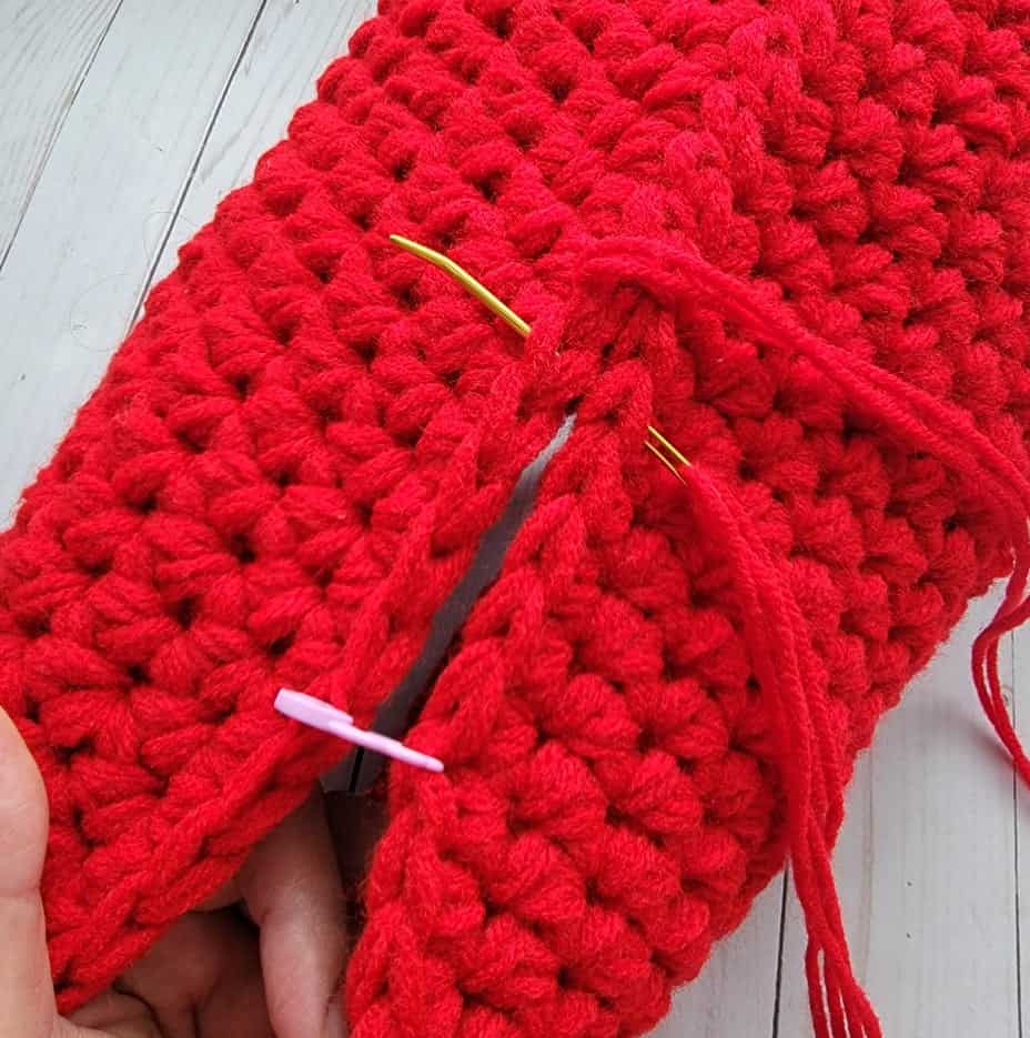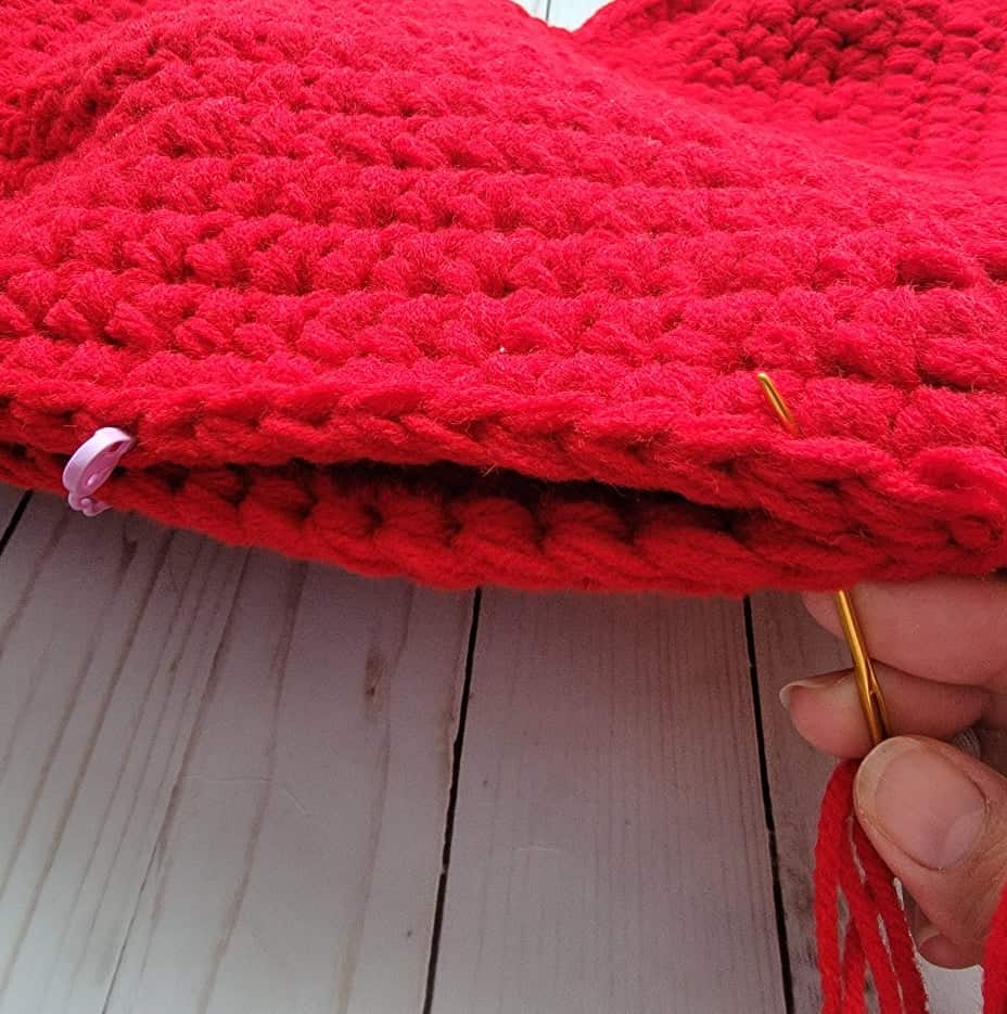 - I recommend using a stitch marker to mark the beginning of the round. Remember to move the stitch marker as you progress. You may also use stitch markers to hold the two panels together when seaming the two pieces.