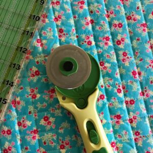 The pattern calls for fabric cut a little larger than necessary so that after you finish quilting it, you trim it to size. With the flex foam this is a fairly thick layer and the Clover Rotary Cutter just slices through the layers perfectly.