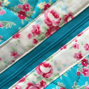 This cosmetic pouch is fully lined but the best thing is that you attach the outer fabric and lining fabric by quilting it on basically the very first step. I absolutely love a quilted pouch and the fact that you see the quilting lines on the inside of the bag as well as the outside, made it super fun. I used my Clover Hera Marker to mark my quilting lines. You could also use the Clover Water Erasable Marker but I love that the Hera Marker works so well and really holds the lines; no need for a pen marker.