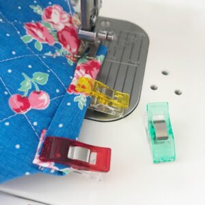 To sew the thickness of the pouch plus the binding can be a little tricky as the layers are thick. I found the best way to do this was to use Clover Wonder Clips to hold everything in place and sew very slowly over these thick seams and I had no problem at all.