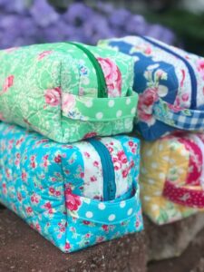 I have to admit that I intended to make a pattern for a box shape cosmetic zipper pouch and write the tutorial to share with you. However, there is a saying in the sewing world that goes something like this: “there is nothing new under the sun”… and as I was struggling to write the pattern I realized that I already owned the perfect pattern and there was absolutely no sense in trying to make it any better! So today, you will definitely want to purchase this pattern called The Holland Pouch by Kristina at Center Street Quilts. It’s under $10 and is the best, most well written and illustrated pattern.