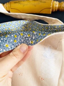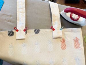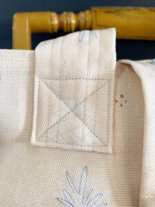 Fold each end over about an inch and a half and sew into place along the top edge of tote. I went over my stitching line twice to make sure the straps will hold really well.