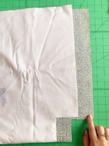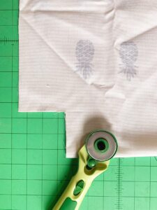 Fold your square cut corners flat to make the corner edges, sew using a generous 1/4 seam allowance and locking in stitches at beginning and end. Repeat with all four corners.