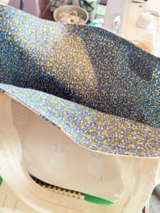 Note: you can adjust the sizes of fabrics to make your bag bigger or smaller as well as cutting the corner squares bigger or smaller to give your tote a different base size. The bigger the corner square cut the more squatty your bag and the wider the base will be. Go ahead and play around with your sizing for fun.