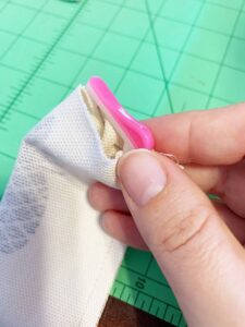 Turn right sides out and clip top edge seam flat as well as your opening closed. For this one I sewed around the edge three times to give it a nice and clean seam finish.