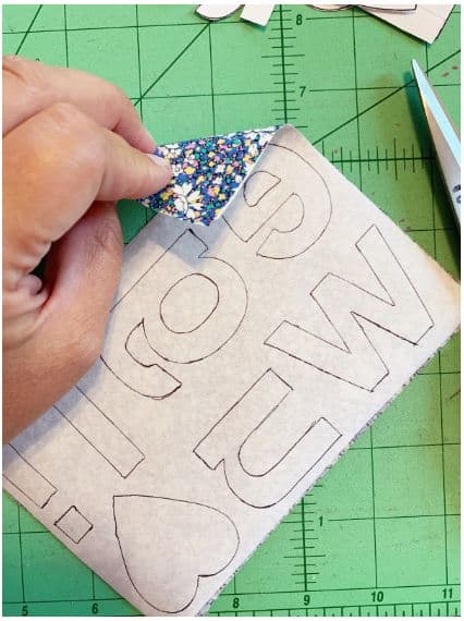 Once you have chosen fabric for your letters, take a piece of Wonder Fuse and iron it to the back side of your fabric. Follow instructions on the packaging to make sure you fuse the interfacing well. I have chosen a special Liberty fabric that a dear friend shared with me. I love to be able to use and enjoy fabrics that are shared with me. This print is a bit darker so I have chosen to trace the letters onto the back paper side of the Wonder Fuse making sure that letters are marked backward as needed. If you are using a lighter fabric I recommend using the Clover Water Soluble Pen and tracing directly onto the front of the fabric, that way you can use your traced lines as a stitch guide as well. Simply spray off with water once your project is finished.