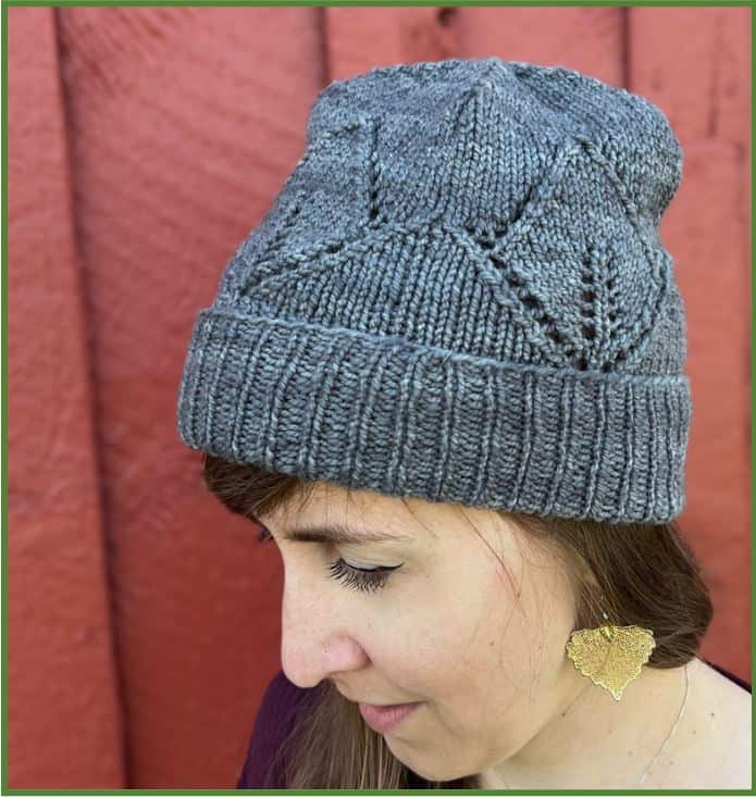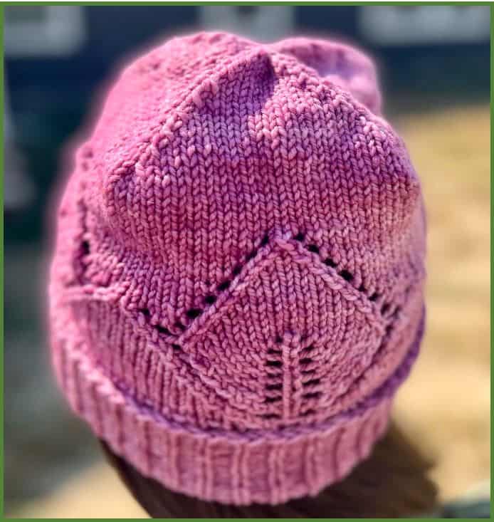 CONSTRUCTION OVERVIEW: This Beanie is worked in the round from the bottom up, starting with a 1×1 ribbing to create a folded-over brim. Body of hat entails increases and decreases to create a lovely lacework design. For knitters who like a visual reference, follow the pattern stitch chart to work the lacework on the body of the hat. For knitters who prefer written directions for their lacework, follow the Body pattern instructions. Crown is a 4-corner decrease knit in stockinette stitch. The hat is worn slightly slouchy with room at the top. Since it’s made with 100% wool, I recommend blocking it before wearing, and then moving forward hand wash it gently with your preferred wool wash.