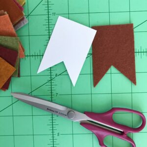 Step One: Gather supplies and make a pendant pattern from paper. I made mine 2 inches wide by 3 inches long and I simply cut the middle points from the bottom edge to the center. Using your Bordeaux scissors cut as many little felt pendants as you want.