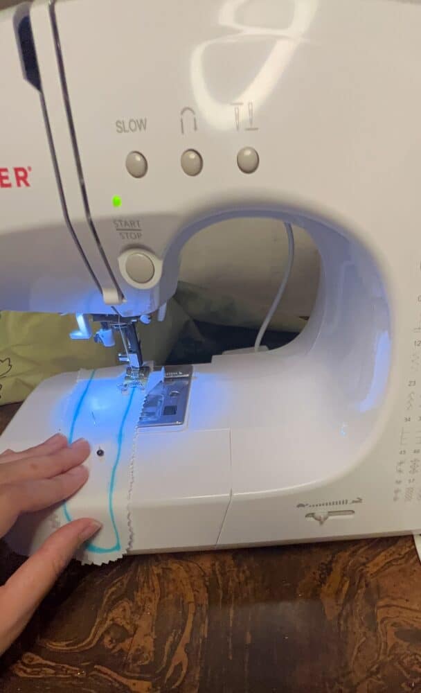 - Sew along the pattern outline, making sure to keep about 5 inches of the middle of one side unsewn. This opening serves as a way to turn the fabric right side out and to slip the headband in.