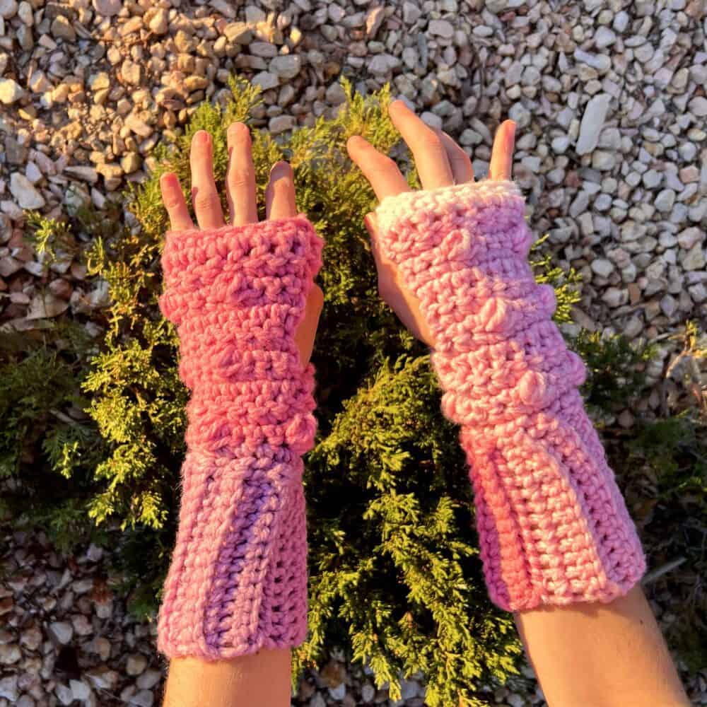I wanted to create a design that captures the spirit of the season, while still being practical and fashionable. These arm warmers will keep you cozy on cooler Spring days while adding a touch of fairy charm to your outfit. The fusion of the Y2K aesthetic and the gentle warmth of spring make this pattern the perfect accessory for any faerie lover.