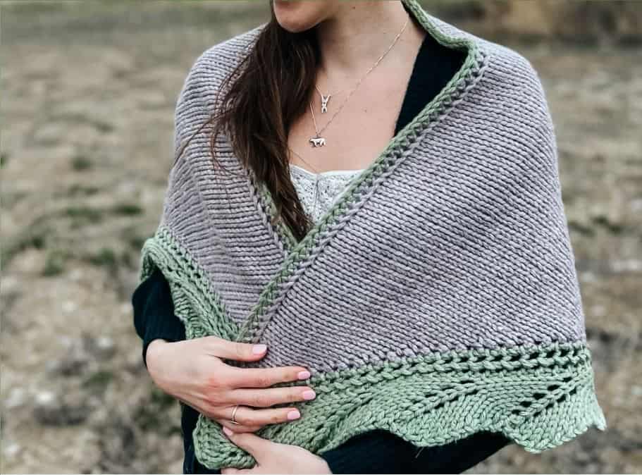 The mornings and evenings still have a bit of a nip to them, which is why I created this shawl. My mom taught me how to knit over 30 years ago, and I wanted to create a shawl that she will enjoy wearing over her shoulders as she drinks her morning tea. As a fellow knitter, I wanted to create something that she can also wear comfortably around her shoulders while working on one of her knitting projects as well!