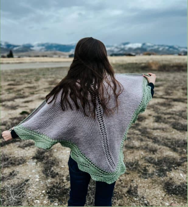 I love spring in Montana because all of the colors and textures of the landscape start to re-emerge after a long winter of snow-covered vistas. As a big fan of using lacework to evoke nature scenes, I designed the leafy border of this shawl after being inspired by the spring awakening I’m witnessing outside my window. I love this season of vibrant green foliage, even if it does also mean mud gets everywhere in our house!