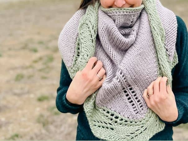 Happy Spring Knitters! Hannah here, the knitwear designer, blogger, and maker behind Bears Den Essentials (@bearsdenessentials) with a lovely pattern that you can knit up in time for Mother’s Day. Knit with the lovely colors of Lion Brand’s Hue + Me Yarn, this shawl uses a combination of stockinette stitch and lacework to create a textured look without being too busy.