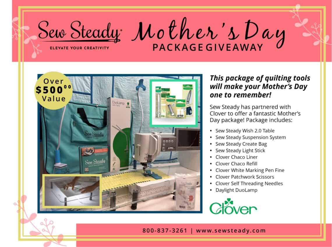 Blog Sew Steady Mothers Day Package Giveaway 04/26/2023 / Don’t miss out on this amazing giveaway! Fill out the form below for a chance to win! [woobox offer=”ukcmut” trigger=”enter”]