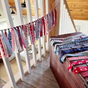 I hope you have a wonderful Fourth of July! It is one of my favorite holidays and decorating in patriotic colors is always special for me. I’d love to hear if you make a no sew bunting and where you hang it!