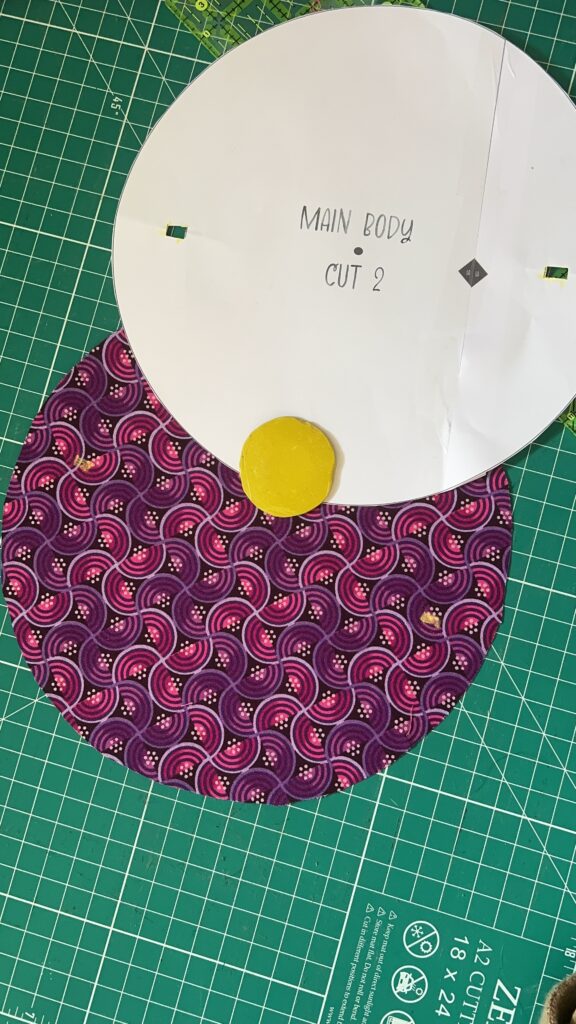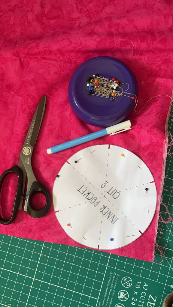 1. Print at 100% scale and cut out from paper, fabric, and cardboard the attached pattern template. Make sure to indicate notches and guidelines (especially on the inner pocket piece) using a water erasable pen or tailor’s chalk. *Note: You will only need to indicate the buttonhole notches on the right side of one of the main body pieces and the guidelines on the right side of one of the inner pocket pieces. Â
