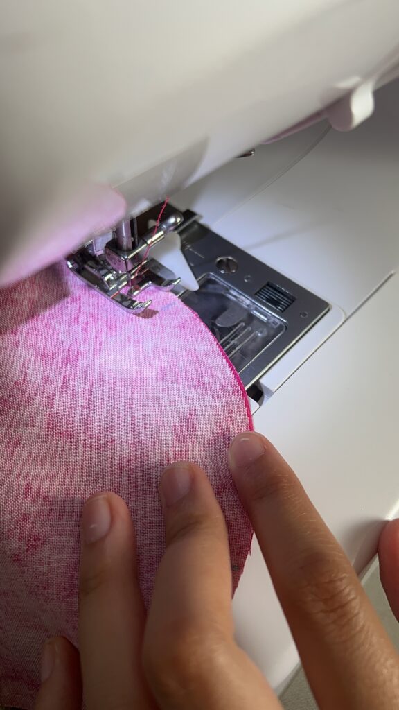 4. Place the main body pieces right sides together using clips and sew together with a 0.5cm seam allowance, make sure to leave a gap around 2” long so you’ll be able to turn the fabric right side out.