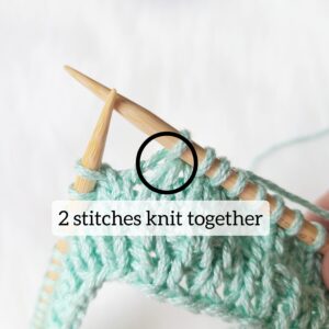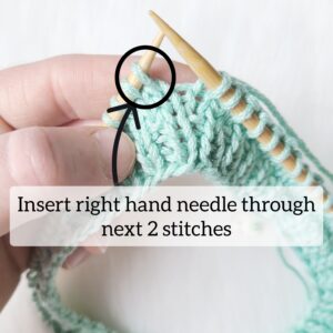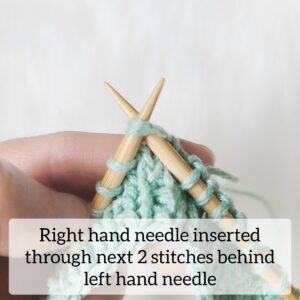 Step 1 – Insert right hand needle as if to knit through the next 2 stitches from front to back.