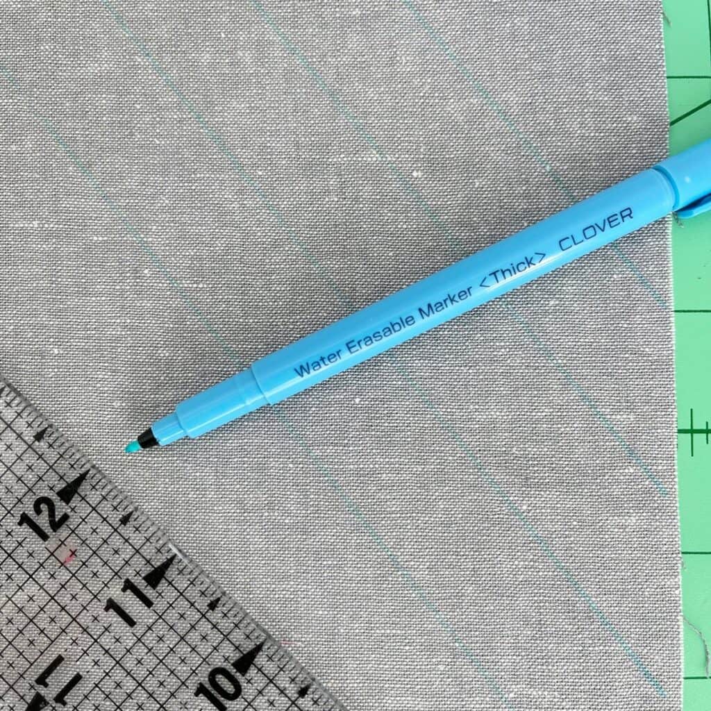 I used linen fabric for the main part of the purse and little tiny bits of Liberty fabric for the accents. This pattern called for Flex Foam, which I love sewing with and use a lot in bags. But on this project instead of machine quilting I decided to hand quilt it. I’ve never hand quilted flex foam before but it was a cinch! I used my very favorite water soluble Clover Erasable Marker to mark all my lines. If you have never used this marker before, you need to start. I’ve used so many different markers and this one is my favorite! I’m lost if I don’t have two or three on my sewing table!