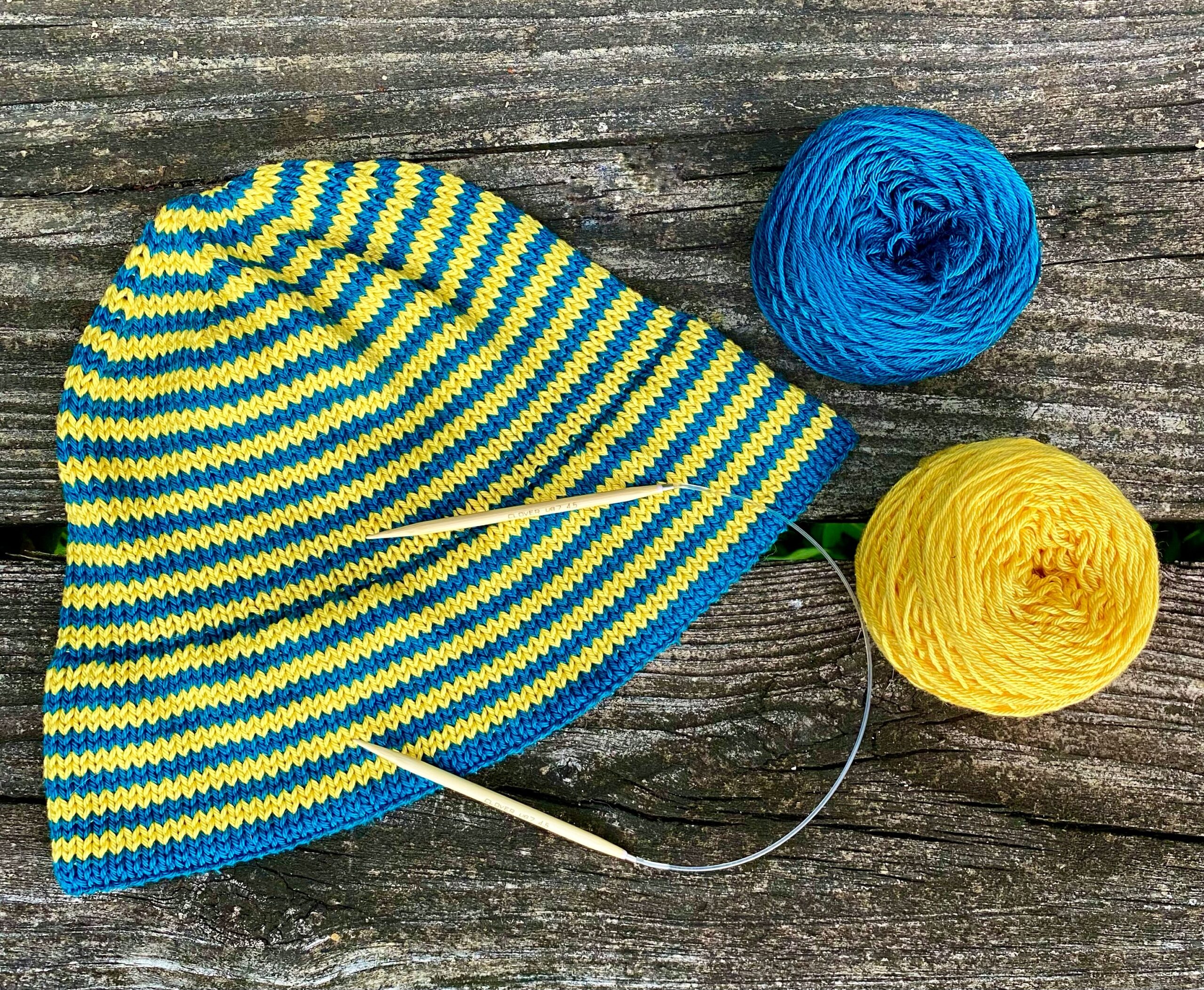 Hi everyone! I’m Krista Ann (@explorewithknitsy on IG) & I’m so happy to be back to writing for Clover’s blog!  With summer & its heat fully in motion, it’s time to break out the beach gear – AND the beach knitting! ?? No knitter’s beach bag would be complete without a fun and summery cotton hat. Grab your favorite cotton yarn in the brightest and most summery colors you can find, and whip up this striped bucket hat before your next beach outing or bring the project along to your next lakeside adventure! Constructed with a double thick brim for maximum sun protection, this beachy hat is a quick (and really fun!) knit. Be sure to use a high-quality cotton yarn so that you can throw it in the washing machine at the end of a sandy day. You can have fun with the colors and make lots of different colored stripes, or you can knit the entire hat using a single color if you like to keep things simple. No matter what color choices you make – I bet you won’t be able to make just one of them! Time to knit a new bucket hat to match every bikini in your swim collection! ?