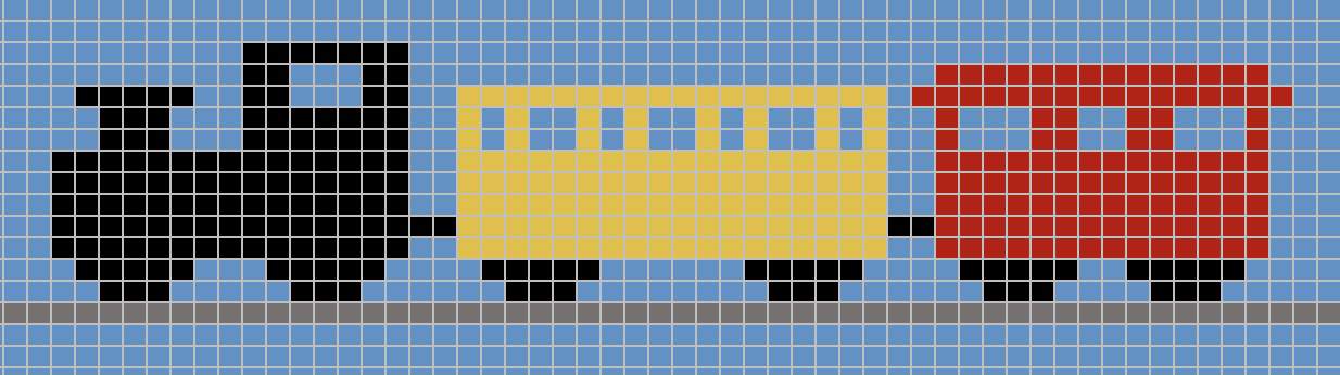 First, pick where you want to get started on the body of the hat. I try to center the train so that it evenly spans three of the four quarters of the hat. Start with the gray train tracks so you have an even line to work off of for the rest of the stitches. I recommend placing the tracks a few rows up from the ribbing edge, but you can center the duplicate stitch however works best for you. After that, continue by duplicate stitching the wheels, connectors, and locomotive of the train. After that, work the red carriage. Finally, go back to the back of the train (the caboose!) and complete the red portion of the duplicate stitching.