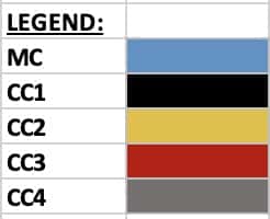 *The gray tracks go all the way around the hat– work duplicate stitch all the way around the body of the hat for the tracks in CC4.