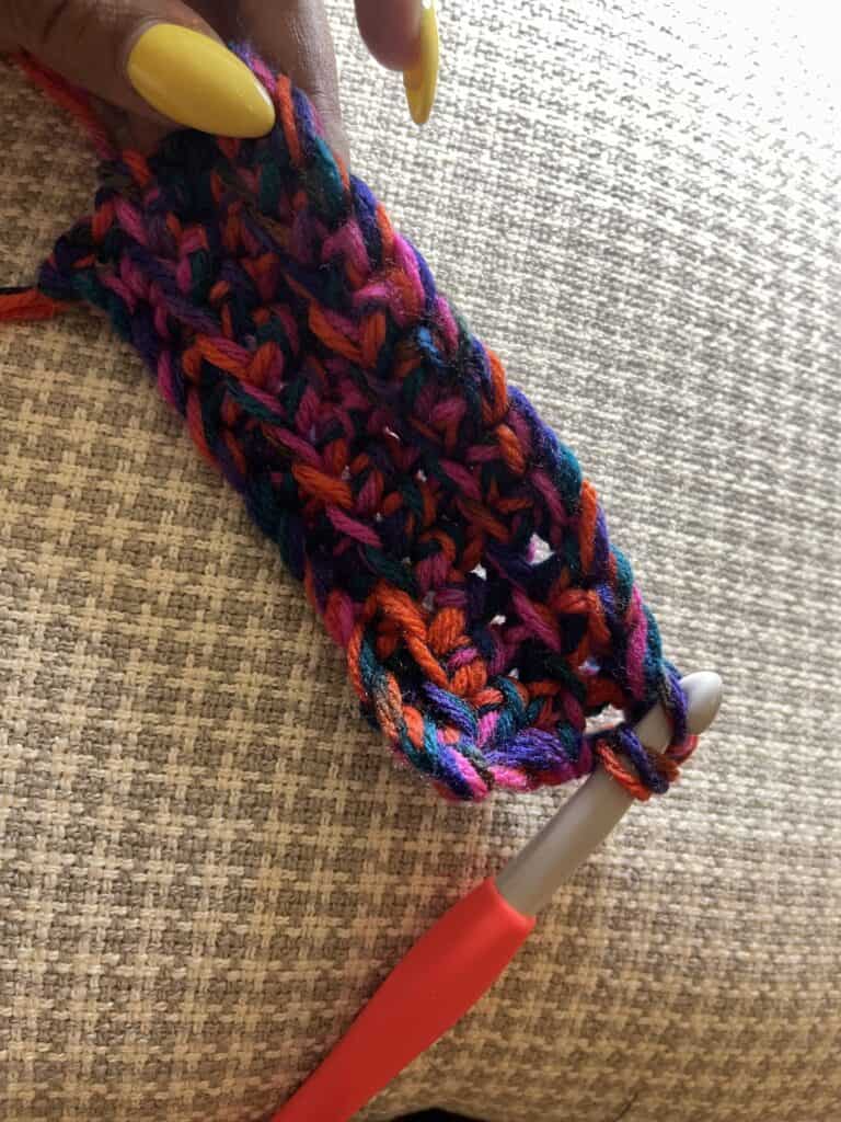 This yarn I chose is fabulous! In the future, you can use 3 different color skeins to add a different pattern. Crocheting your own bags allows you to express your creativity while staying eco-friendly and fashionable. It’s also perfect for not having to buy a new colored bag to match the new season – you can just create your own by using different colors for each holiday/time of year! So grab your yarn and crochet hook, and start crafting your own crochet crossbody bag today! 🙂