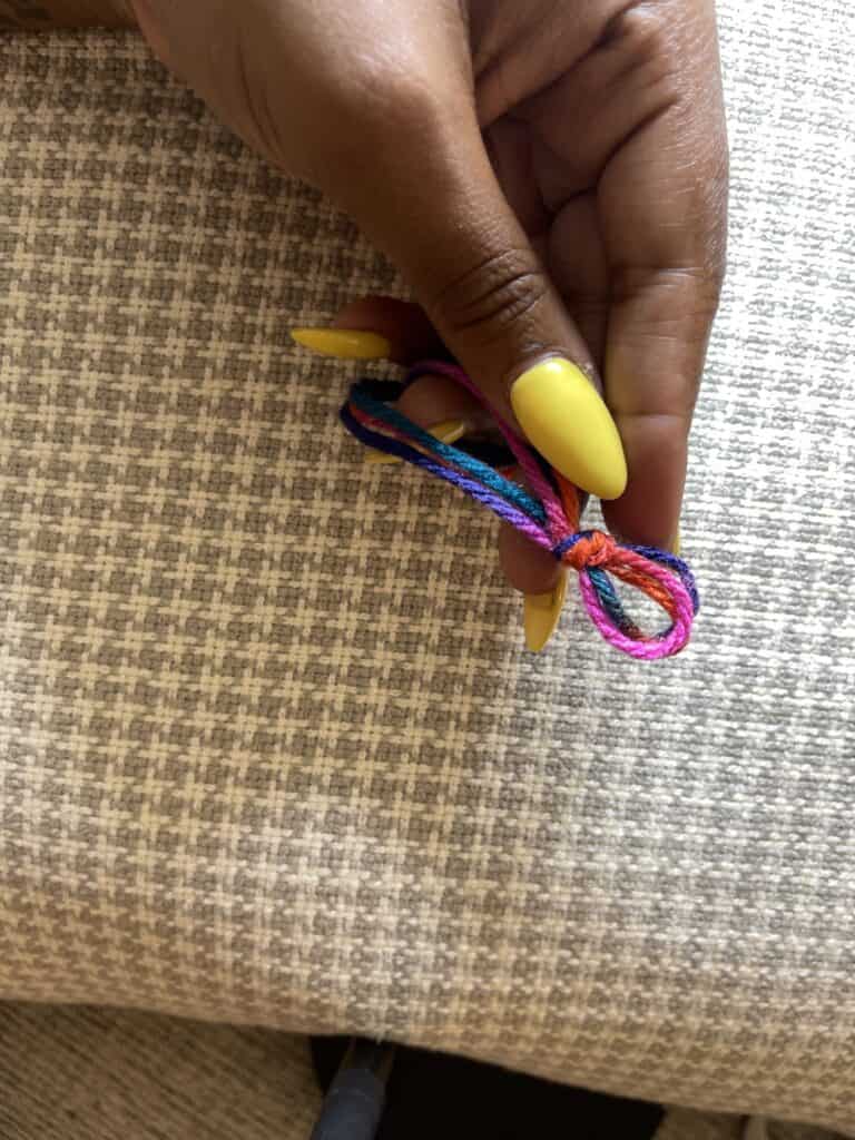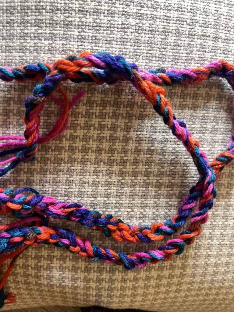 Create a slip knot using three pieces of yarn at a time (I do this for thickness).