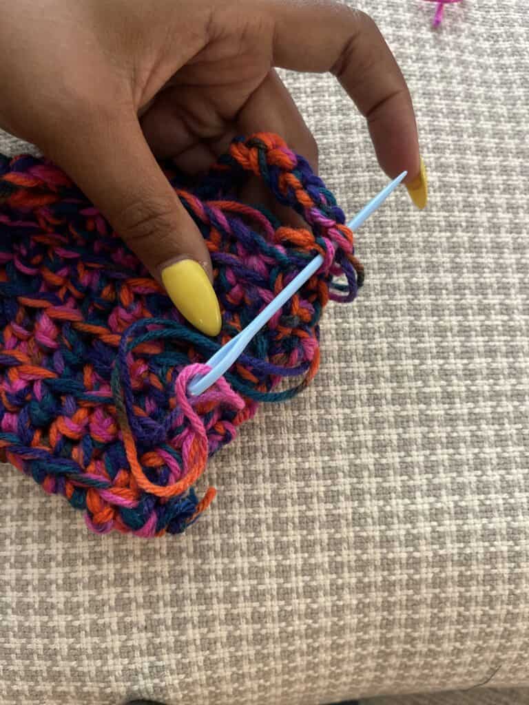 Use your yarn needle to sew the sides of the bag together. Attach straps as you meet the end of the bag.