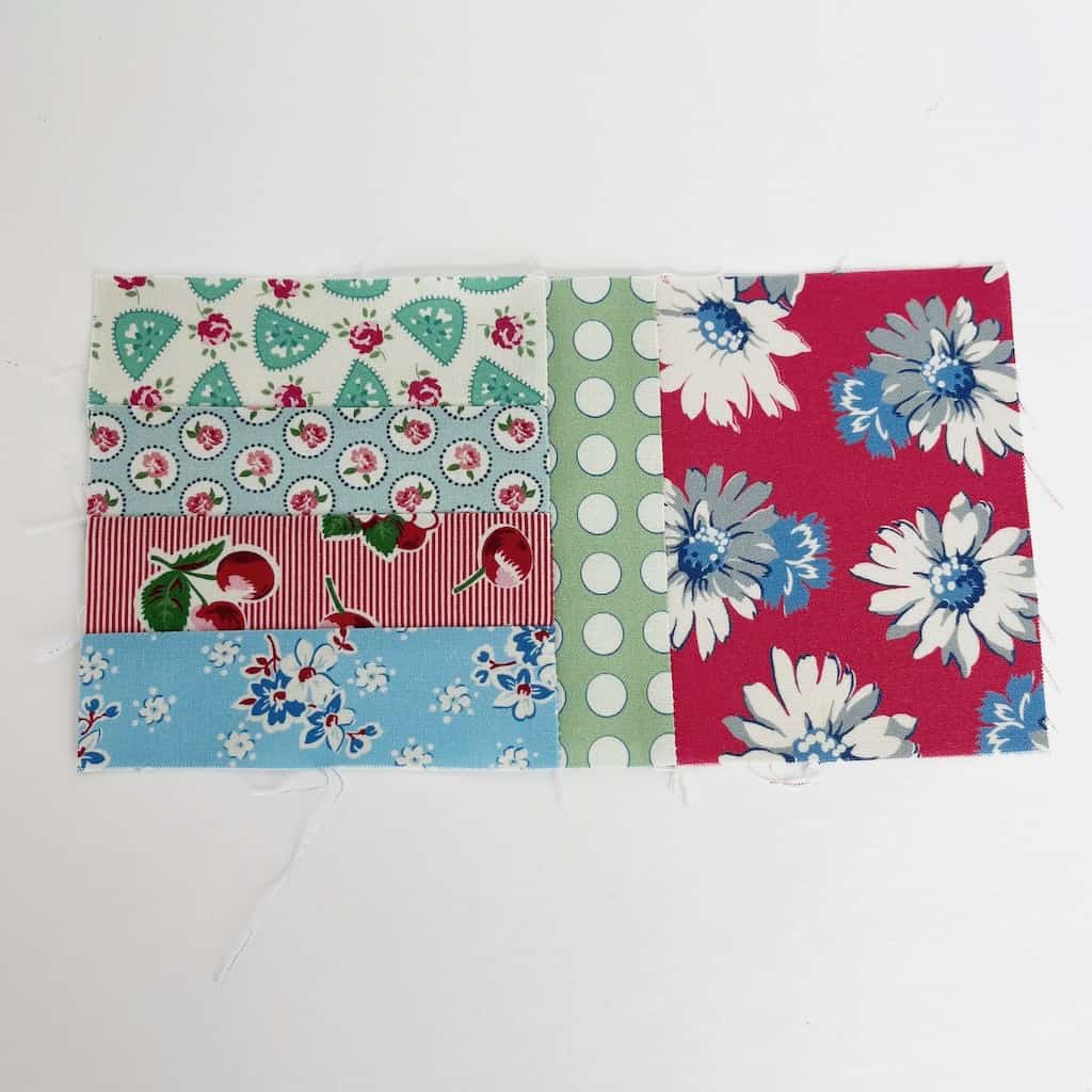 - Sew the four strips for book back together on the long edges, using a 1/4 inch seam. Press seams in one direction.