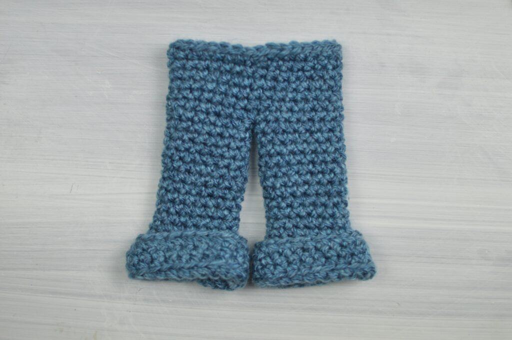 Cut the yarn, pull through the last stitch and make an invisible join before weaving in the ends. Roll the cuff up at the bottom of the pants.