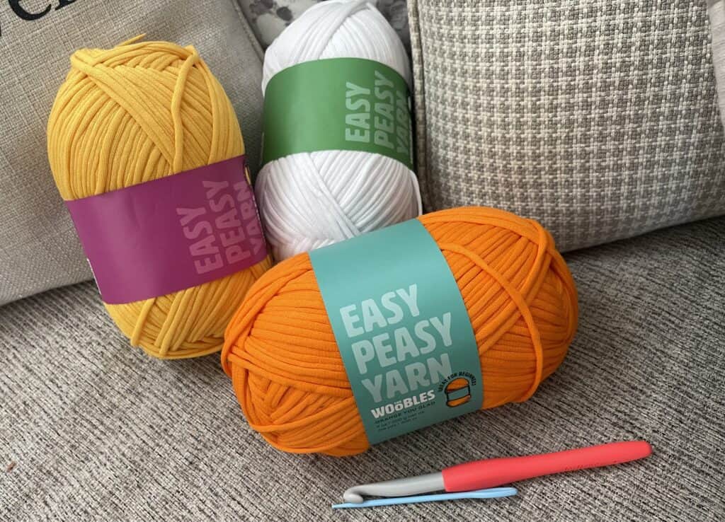 - The Woobles Easy Peasy Yarn (Orange, Yellow, and White)