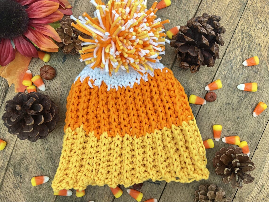 Candy Corn Pom-Pom Beanie