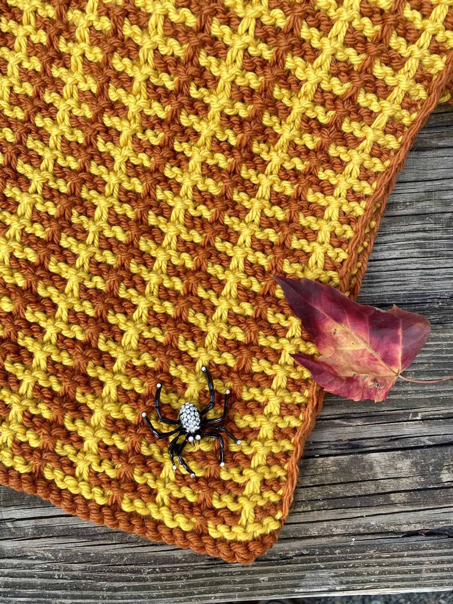 If necessary, lightly block your scarf. Finish off your look with a spooky broach and keep your neck cozy!