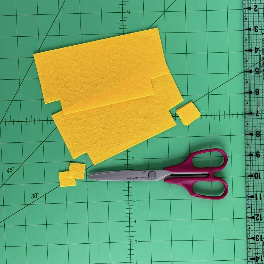 - yellow felt: cut 2 pieces (6 inches x 3 inches)