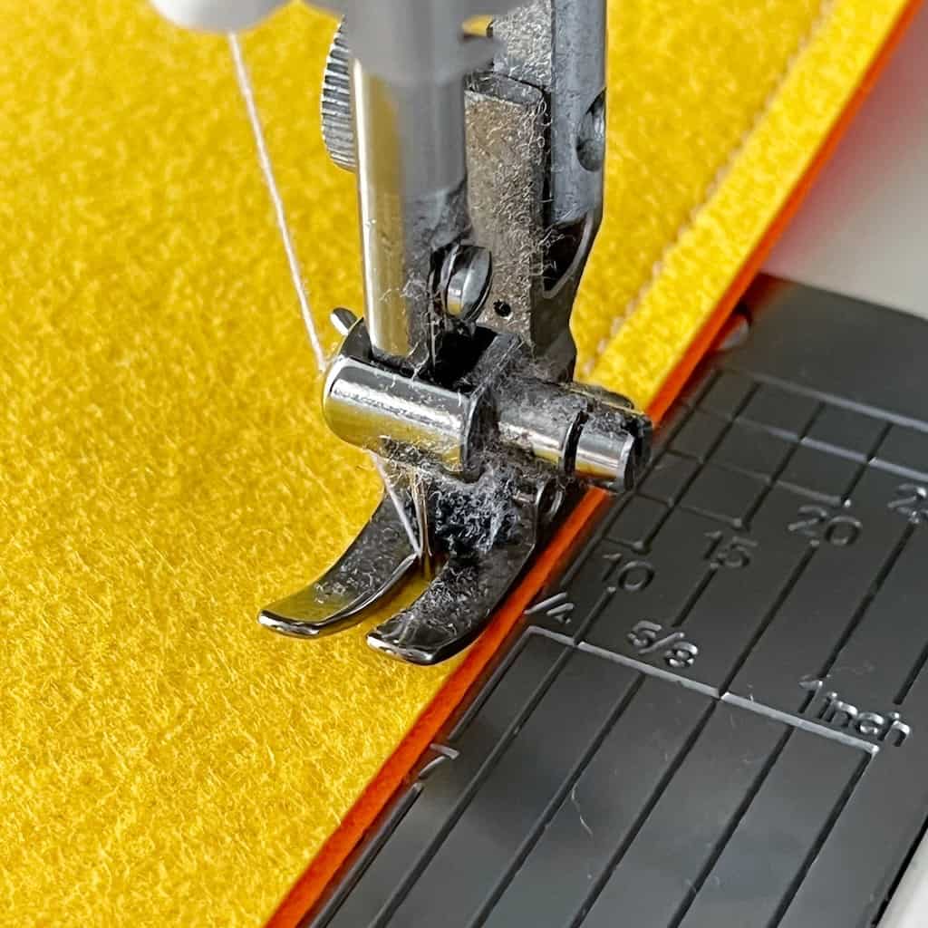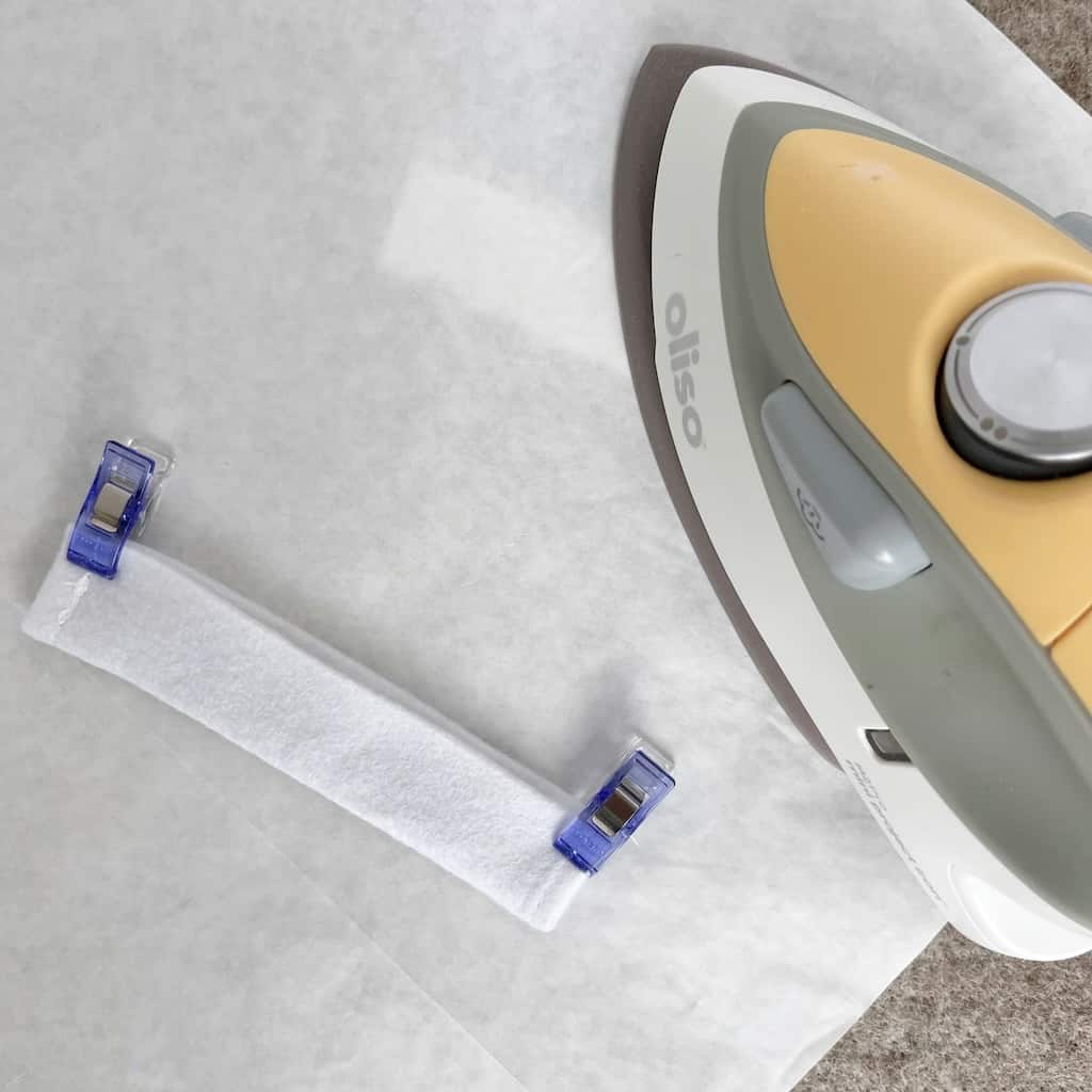 Step Four: Carefully press the seams so they are facing in one direction (I used a paper pressing sheet for this to insure that my iron doesn’t stick to the felt).