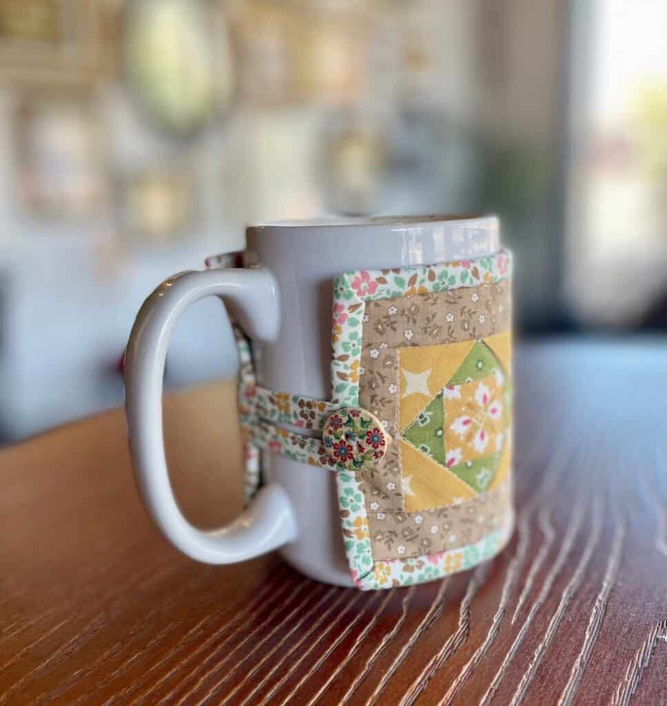 I know there are a lot of steps to this tutorial, but it’s really simple! Follow the steps and enjoy the process and you’ll be able to use your mug cozy before you know it! I hope you set aside some time this fall, not only to sew, but to enjoy some time sitting with a hot drink using your beautiful mug cozy!