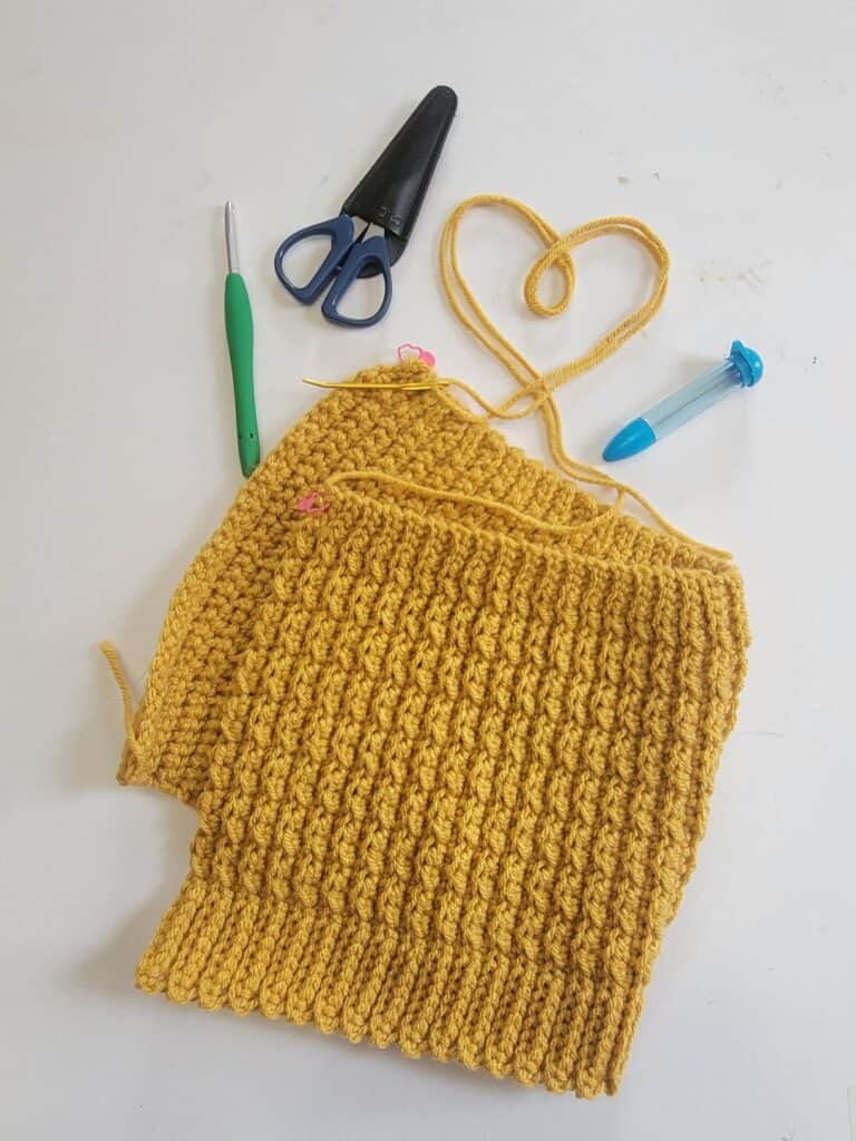 - Now, with rs facing out, bring the 1st and last rows together and seam to close using a mattress or whip stitch.