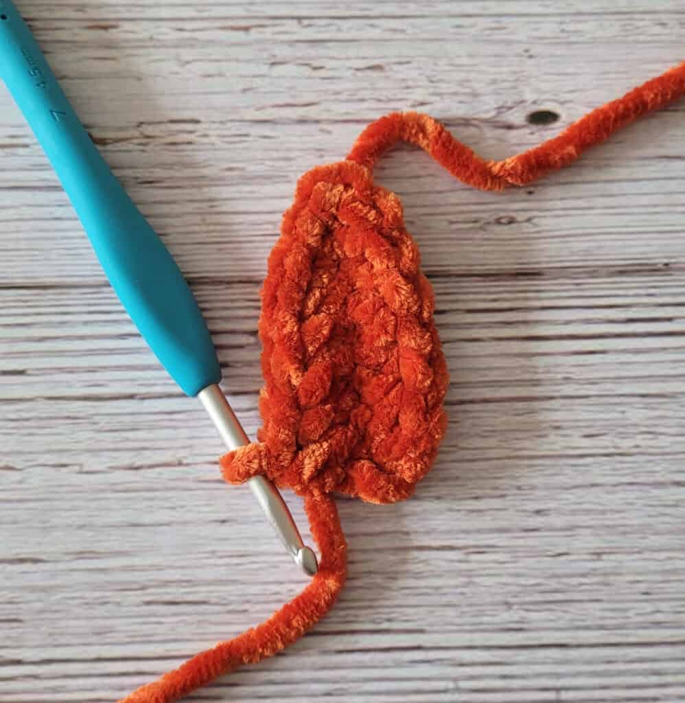 • Note: Because the Velvet yarn has a lot of texture, you won’t be able to tell that one side section has the front of the stitches showing and the other side section has the back of the stitches showing – doing it this way helps the leaf look its best ?