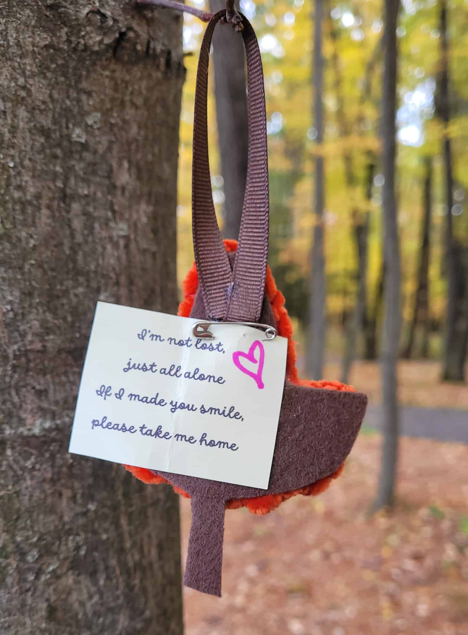 • Write out a short message onto cardstock paper and pin (or glue) to back of leaf – fold message in half so hidden from front view.