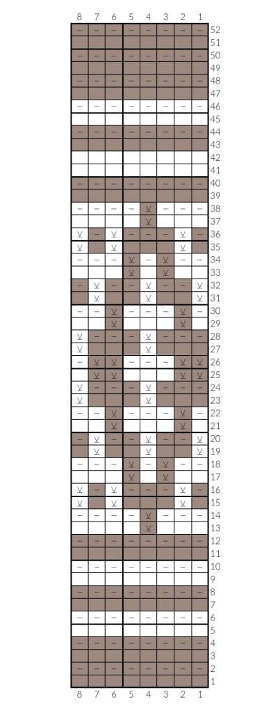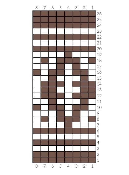 - If you are familiar with how to knit from a mosaic chart, use chart 2. If you are not familiar with mosaic knitting, refer to chart 1 and the symbols that accompany it.