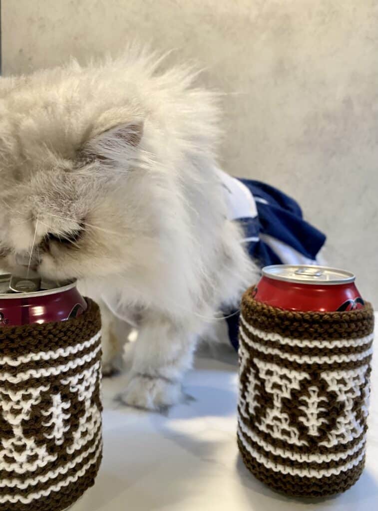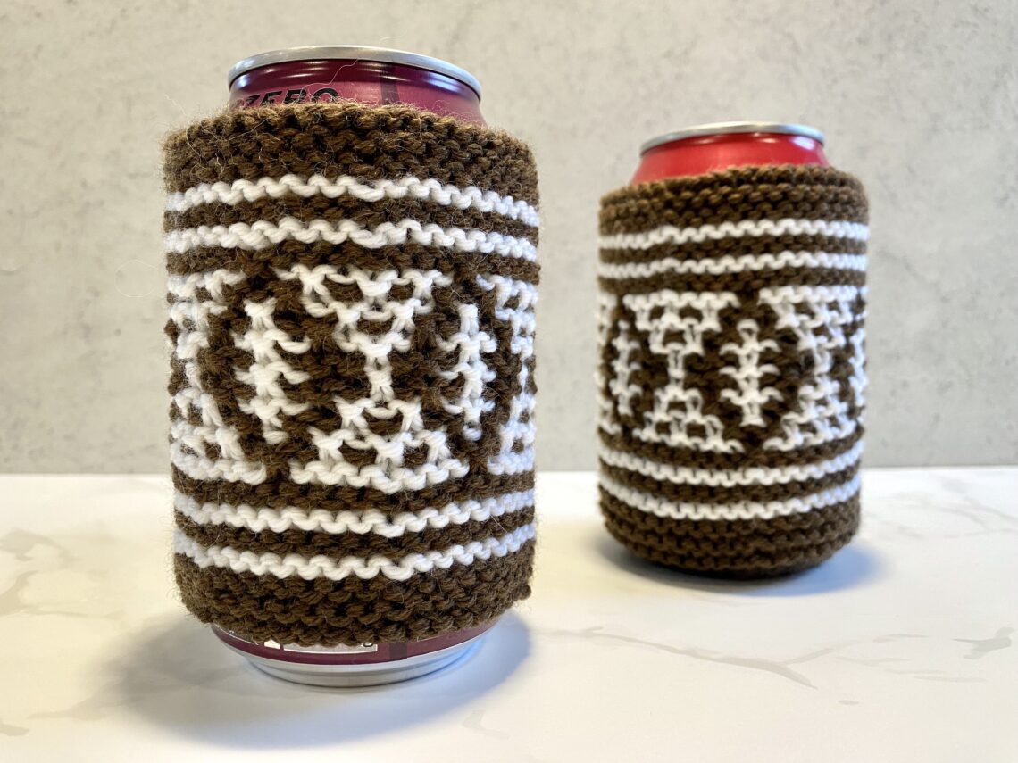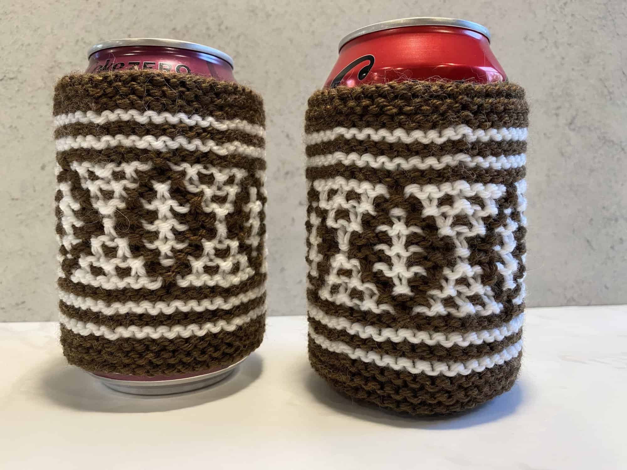 It’s my favorite time of the year! The weather is cool, the nights are long, and football is on TV! If you’re a football fan too, then this coozie is a must-have for your next game day party. These also make a great “game day” gift for your neighbor that always invites you to Sunday football parties! You can knit little mosaic footballs that wrap around your 12oz soda can so that you keep the coldness of your drink off your hands (which keeps your knitting fingers stay nice and warm) 😉 Or you could knit a coozie with your favorite team colors! No matter if they are for you or a fellow football fanatic, these soda can coozies will be a game changer. Let’s get this tutorial started!