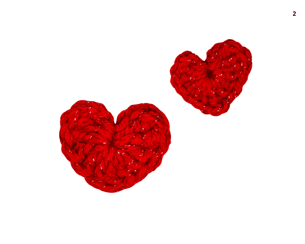 - Note: For the heart on the front of the envelope, crochet with two strands of yarn at the same time with a 4 mm hook. This will make it larger with the exact same pattern! For the heart that will be the “stamp” on the back of the envelope, crochet with one strand and a 3.25 mm hook.
